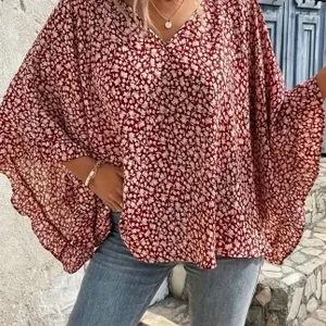 Step into elegance with our Allover Print V-Neck Blouse. This stunning batwing sleeve tie-back top is brand new and offers a chic and sophisticated look.